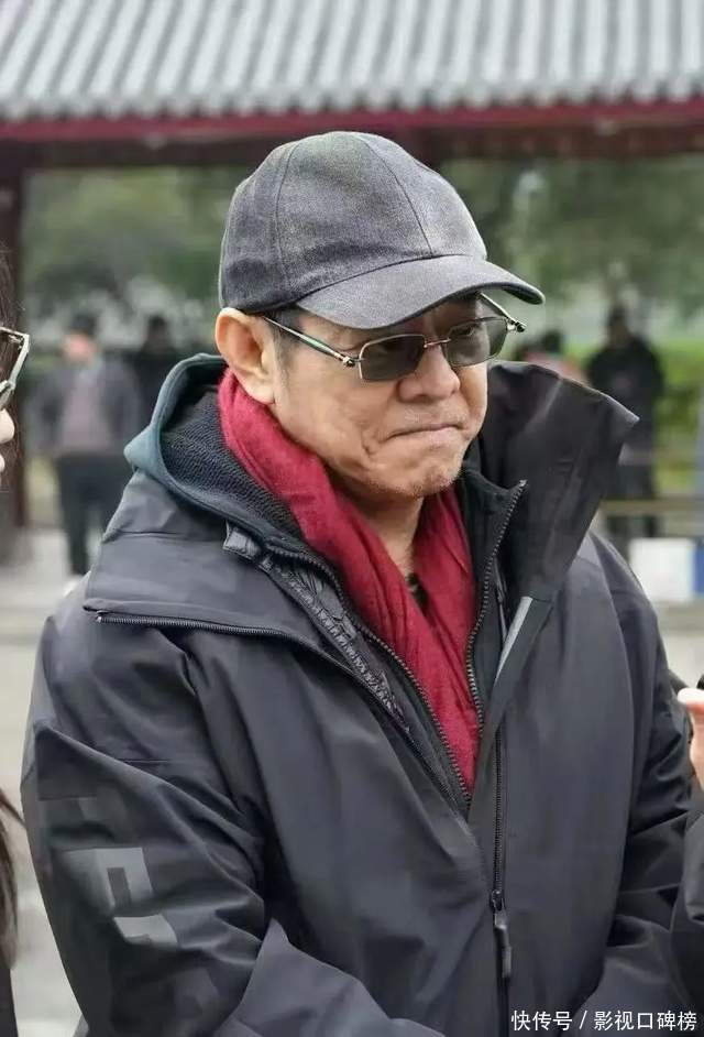 李连杰穿着一身黑色羽绒服,戴着帽子与黑框眼镜。脸上有岁月的痕迹了,皱纹也是清晰可见,沧桑又略有一点憔悴,今年岁的他明显要比之前苍老了许多。